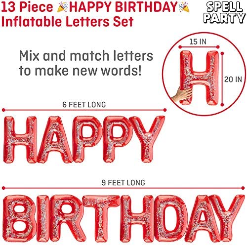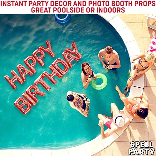 Happy Birthday Pool Float Inflatable Letter Set by Spell Party u2013 Large 20u201d Letter Balloons Floatie Decorations Backdrop Banner for Adult Kids Pool Party