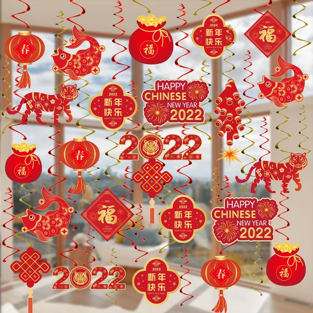 Happy Chinese New Year Decorations 2022 Hanging Swirls Decorations – Year of the Tiger New Year 2022 Chinese Spring Festival Party Supplies