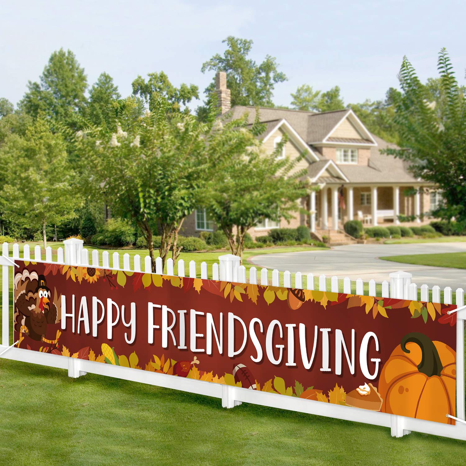 Happy Friendsgiving Banner Thanksgiving Fall Theme Sign Friends Gathering Home Indoor Outdoor Decoration Friends Fall Dinner Party Supplies Photo Prop Backdrop