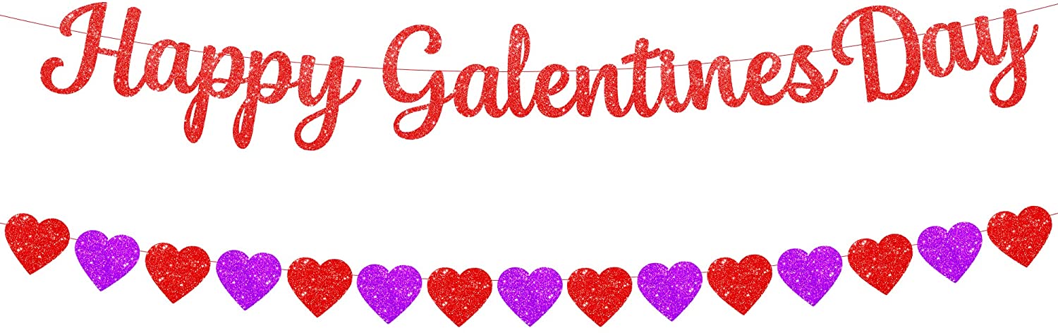 Happy Galentines Day Banner, Glitter – 10 Feet, No DIY | Heart Garland for Galentines Day Decorations | Galentines Day Party Supplies | Galentines Banner, Valentines Day Decor | Galentines Day Garland