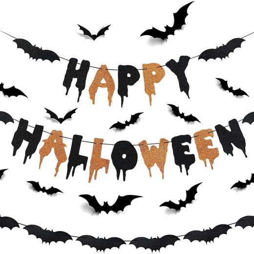 Halloween Party Decor: Unique font design and combined bats elements, full of Halloween festival feeling.It is a must-have garland to celebrate your Halloween party, brighten up your home. Package Includes: 1pcs black&orange Happy Halloween banner + 1pcs Halloweeen Bats Garland Banner + 12pcs 3D Bats Wall Decal Stickers, this Halloween decorations will definitely make your Halloween party fabulously favorite and meaningful. Easy To Use: Included a needle and ribbons to string up the garland banner.Its very simple and just place a ribbon through the hole at the top of each letter cardstock,a little DIY.You can use it as an excellent backdrop or photo prop to decorate your Halloween party. Durable and High Quality Material: The Happy Halloween banner is made of glitter cardstock, bright black and orange glittery colors and well made, you don’t worry about falling glitters everywhere! Perfect for your Halloween party celebration! Worth Buying It: This Halloween party banner decorations will create a cheerful atmosphere for Halloween Holidy and highlight your gathering, your family and friends will love it.Buy it now!