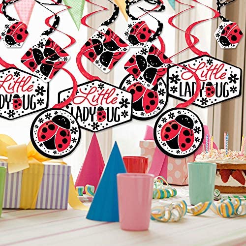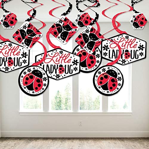 Happy Little Ladybug – Baby Shower or Birthday Party Hanging Decor – Party Decoration Swirls – Set of 40