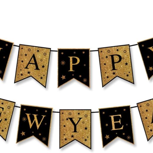 Happy New Year Banner, Timepieces Happy New Year Holiday Bunting, Hello 2021 Banner Flag, New Year Eve Party Decorations