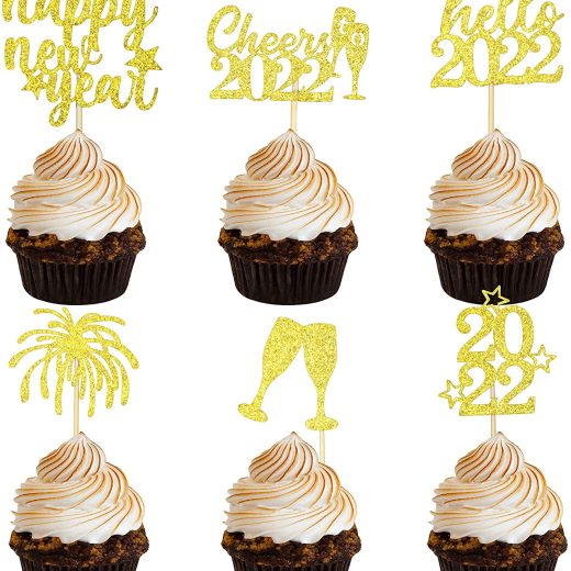Happy New Year Cupcake Toppers 2022, Gold Glitter New Years Cupcake Toppers 2022, New Years Cake Topper, New Years Eve Party Supplies,Hello 2022 Cheers to 2022, 2022 New Year Party Decorations-24Pcs