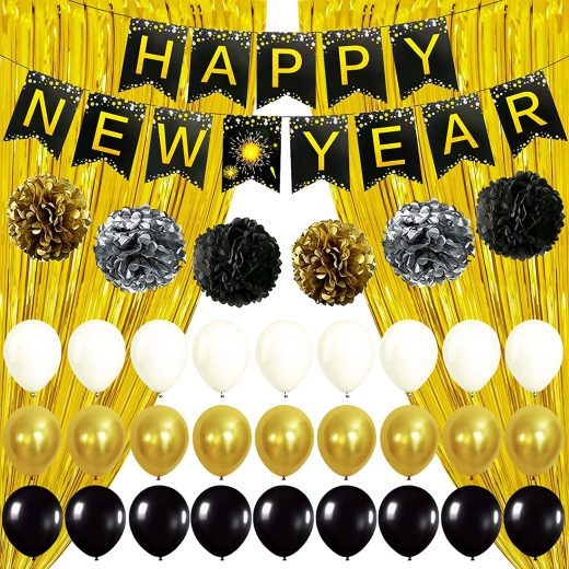 PACK OF 37 | ALL IN ONE SET COMPLETE PACKAGE – Wanting to have a shimmering and extra-special gold happy new year decorations 2022 This new years decorations 2022 kit will add a luxurious ambiance to your event. An elegant combination of black, gold, silver & white latex balloons NYE decorations 2022 pack perfect for celebrations like new years eve 2022 decorations. 10 FEET HAPPY NEW YEAR BANNER WITH SHINY FOIL GOLD FRINGE CURTAIN : Is 2022 new years eve party supplies is what you are looking for This new years backdrop comes with a large 10 feet pre assembled black and gold shiny foil happy new year backdrop banner with 10 feet metallic gold foil fringe curtain you can make best new year party decorations with this. BEAUTIFUL FLORAL POMPOMS WITH CONFETTI AND LATEX BALLOONS : This New Years Eve Backdrop come up with pack of 9 Gold Latex Balloons, 9 Black Balloons, pack of 9 White balloons, gold foil fringe and pack of 1 each gold, black, silver pompoms, pack of 6. You can also reuse New Years Balloons for New Years Eve Decorations. BUY WITH CONFIDENCE l 100% SATISFACTION GUARANTEE – Customer satisfaction is our main objective, so we personally made sure that the materials we used is a Grade A Quality. We will make sure that what you saw on the picture is what you will get on your door. If you are not satisfied with our happy new year decorations set we guarantee to give you 100% full money for this New years signs decorations. ON TREND NEW YEARS BACKDROP | PERFECT NYE PARTY FAVORS – Shining and glowing happy new year balloons 2022 decoration Level up your with this stunning and glittering 2022 new years eve banner kit will make your party light up with luxurious look! Glam up your new years sign backdrop and centerpiece with this beautiful gold new years eve party supplies 2022. What are you waiting for Place your order now for new years banner decor.
