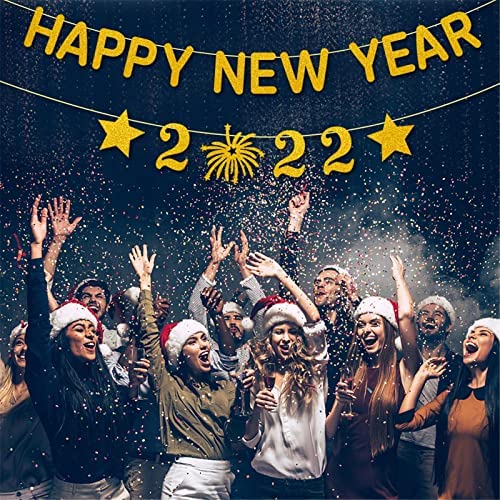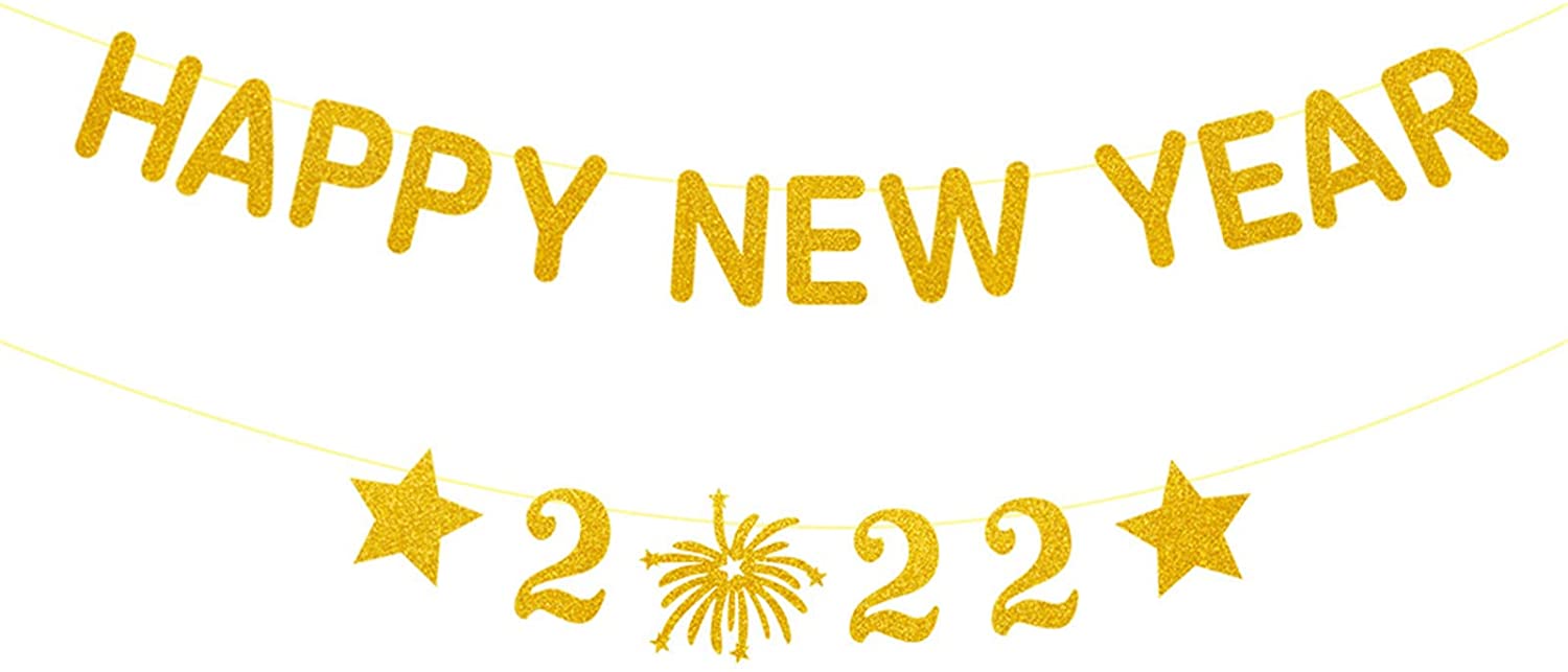Happy New Year Decorations Happy New Year 2022 Banner Star Fireworks Banner Happy New Year Party Supplies