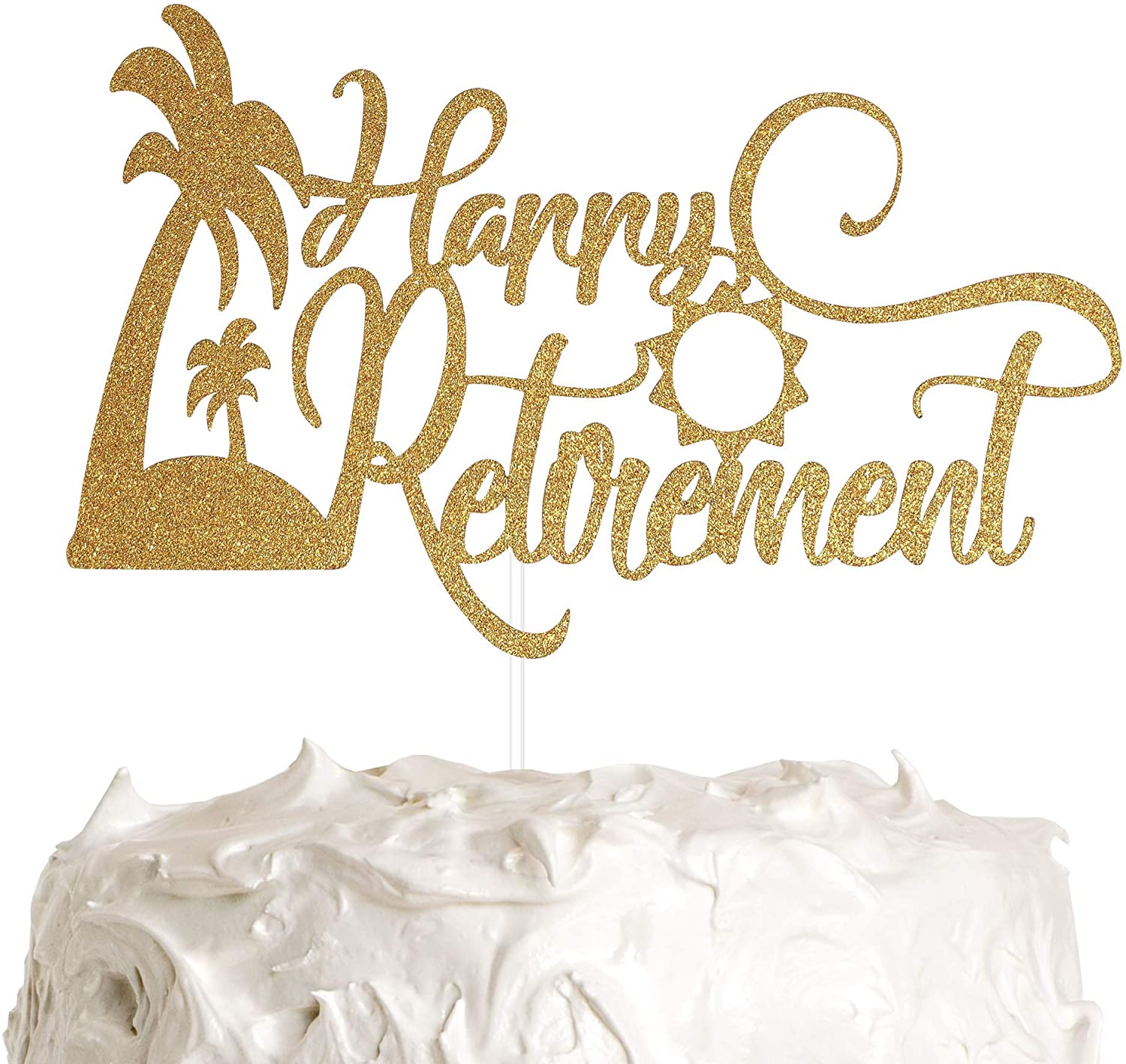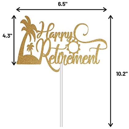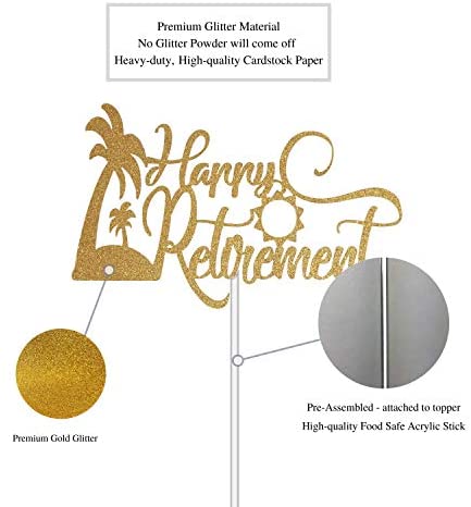 Happy Retirement Cake Topper, Retirement Party Supplies Decoration with Premium Gold Glitter