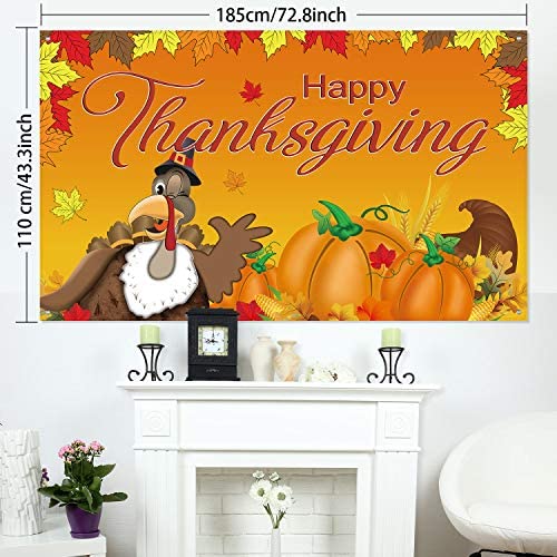 Happy Thanksgiving Background Fall Banner Thanksgiving Decorations Turkey Maple Leaves Pumpkin Banner for Fall Party Supplies , 72.8 x 43.3 Inch