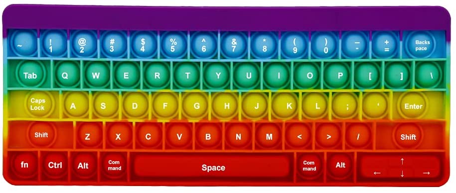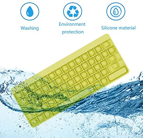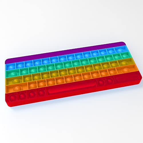color and size A rainbow color decompression keyboard. The size is about 10.6 * 4.3. Bright colors make you happy visually.(With letter)) Safe and friendly materialsPush pop-up foam toys are made of high quality silicone and 100% environmentally friendly. This puzzle toy is most suitable for children over 3 years old. It can not only train childrens logical thinking ability, but also relieve childrens anxiety in the game. The best brain gamePush Pop Bubble Fidget Sensory decompression toys can not only relieve pressure, but also play games for parties and friends. Take turns pressing any number of mice they want in a row. The player who pressed the last mouse lost. Push and pop its a great fidgeting tool. Multi purpose This multi-purpose silicone extrusion toy is the perfect game for parents, the elderly, children and adults. Have fun anytime, anywhere with this great sensory tool. Help restore emotions, family necessities, parent-child games, autism, games that the elderly, children and adults can play. A less stressed co-worker will eliminate your leisure time and strengthen your relationship with the people around you. Reusable cleaningThis product is durable and can be reused and cleaned endlessly after repeated use. You can easily wipe out this silicone foam toy after spilling something in it. The toys are made of advanced silicon materials, which can withstand continuous use and cleaning.