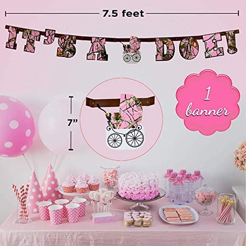 FUN EVENTS – This unique and stylish banner will make the ideal addition to a baby shower reveal party. It will also go great with our Pink Camo party collection. QUICK SETUP – You can hang the banner on the wall, ceiling, a tree, or anywhere you decide to have your next party. The banner is also super-easy to fold up for fast and convenient storage. UNIQUE DESIGN – Banner features high-quality pink camo print with an adorable doe baby carriage. It will go wonderfully with your baby gender reveal decor. SPECIAL DESIGN – Start that baby girl off right with a fun gathering. Great for hunting, outdoor, or camouflage-themed baby showers or reveal parties. LARGE ENOUGH FOR ANY PARTY – Banner measures approximately 7 feet long.