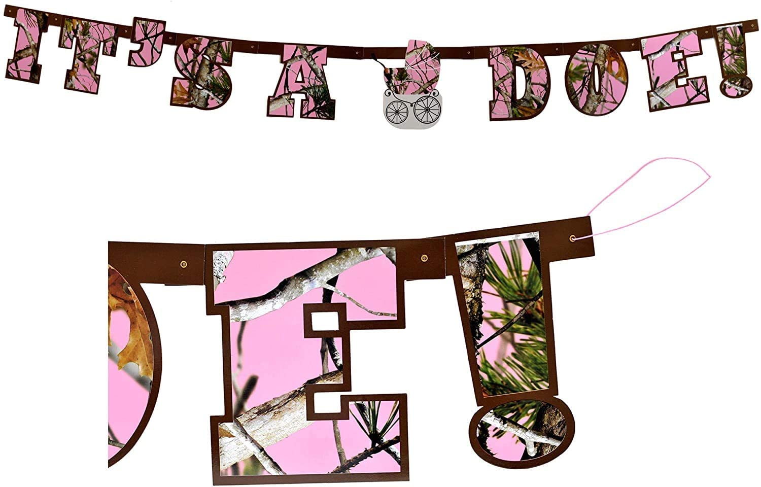 Havercamp Pink Camo Girl Gender Reveal Banner – Its A DOE Banner! 7 1/2 Feet Long, 7 Inch Letters. Gender Reveal Baby Girl Party Collection!