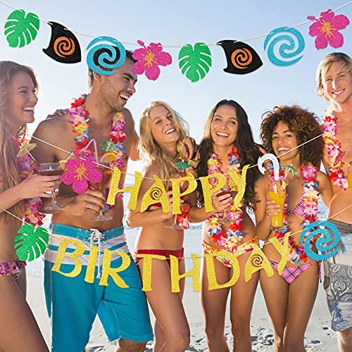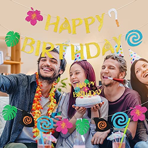 Hawaiian Birthday Decorations- Gold Glitter Hawaiian Happy Birthday Banner and Glitter Hawaiian Theme Garland, Glitter Hawaiian Happy Birthday Cake Topper,Tropical Birthday Decorations, Hawaiian Luau Birthday Decor