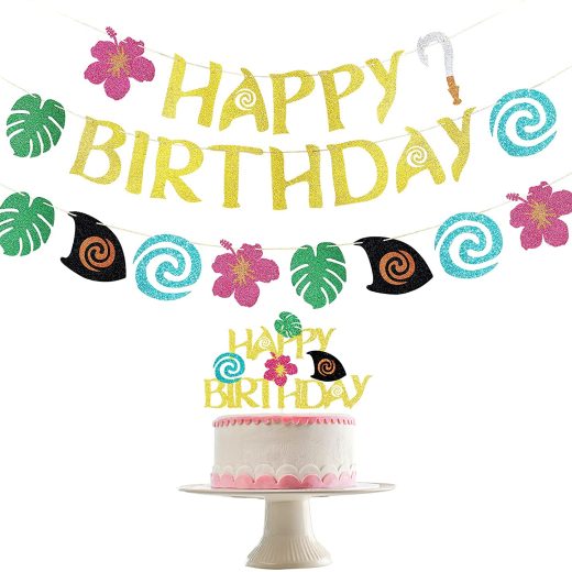 What You Will Get: 1Pcs gold glitter hawaiian happy birthday banner,1pcs glitter hawaiian garland,1pcs hawaiian happy birthday cake topper,perfect …