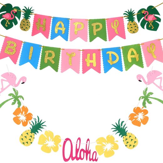 Hawaiian Party Decoration |Luau Party Supplies| Hawaiian Tropical Banner, Flamingo Garland for Pool Party Supplies,Tropical Party Decoration(set of 2),Birthday Banner for Beach Moana Party decorations