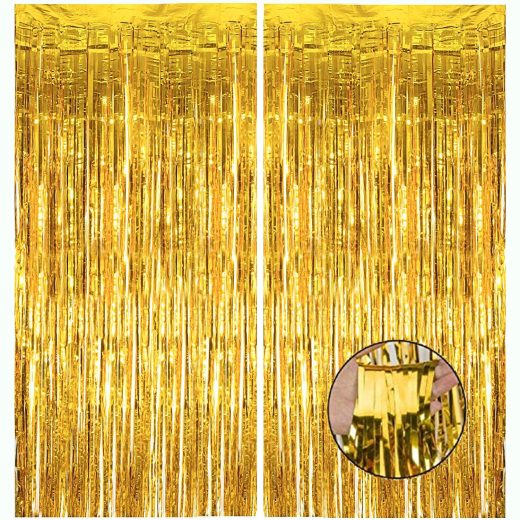 HDLJD Shiny Gold Metallic Foil Fringe Door & Window Curtain Party Decoration 3.3 X 6.6 (Value Pack of 2)