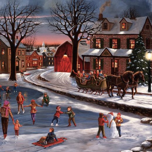 Jigsaw puzzle includes 1000 pieces & measures 30×24 when completed. Fully interlocking and randomly shaped pieces. Produced on thick, premium quality puzzle board. Precision cutting with minimal dust. Made with recycled materials. A delightful winter jigsaw puzzle.