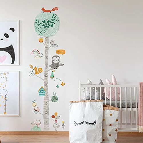 Height Measurement Growth Chart Tree Wall Stickers, Cartoon Animals Squirrel Owl Height Measure Decals, Jungle Hanging Ruler Decor, Removable DIY Art Murals for Kids Bedroom Baby Nursery Decoration