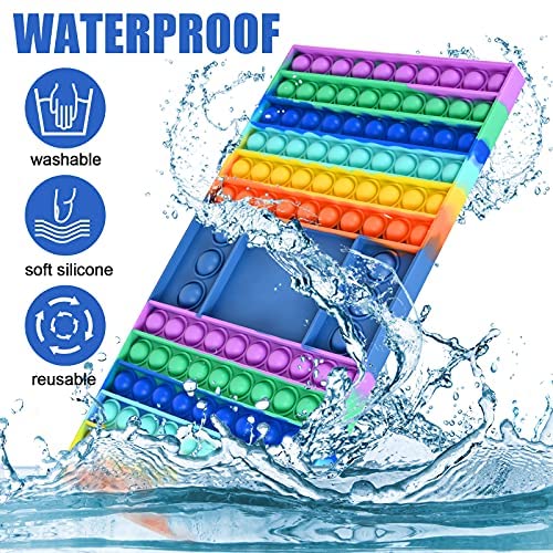 Big fidget game toyThis popping game fidget toy is a nice interactive fidget game toy, including a Chess Board with 126 bubbles popper and 2 dices. This big pop game fidget toy is a educational toy for kids. Premium MaterialsUsing high-quality silicone material, the giant pop sensory fidget toy is endlessly reusable and washable. Besides it can be folded at will which is friendly for kids.Due to the high-quality materials, pop sounds can be made loudly on both sides. Game InstructionsEach players have 60 pop bubbles popper. Take turns to roll the dices and press rainbow fidget popper according to the number. Who press the last popper will lose one round and press a big pop in the blue area to mark it. Three wins in five rounds. Widely UsedThis big pop chess board toy is npt only a bubble popper toy , but also also a stress relief toy or a pet frisbeIt. It is soft and lightweight, you can fold it, put it into your bag and take it to classroom, office, plane, etc. Especially suitable for camping and traveling. All Ages GiftsThe huge bubble game toy is suitable for birthdays, parties and holiday gifts for children, family, friends and colleagues. It is durable and can be used for a long time. You can play with your children at home, or you can relieve.