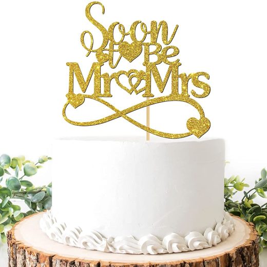 Helewilk Soon to Be Mr & Mrs Cake Topper for Wedding, Golden Glitter Bride Shower Cake Decoratin for Bride and Groom, Just Married, Engagement / Wedding Party Supplies
