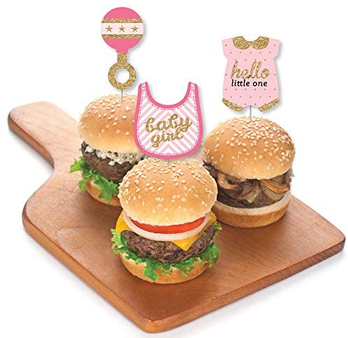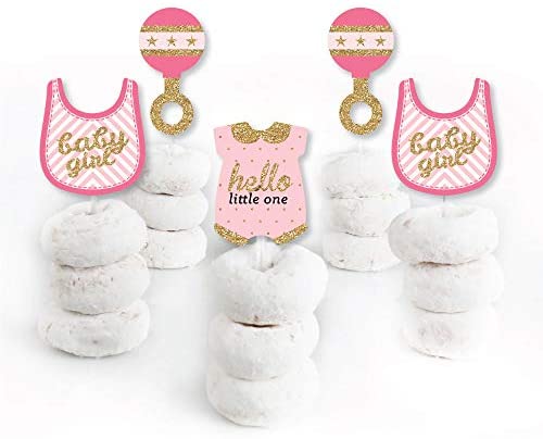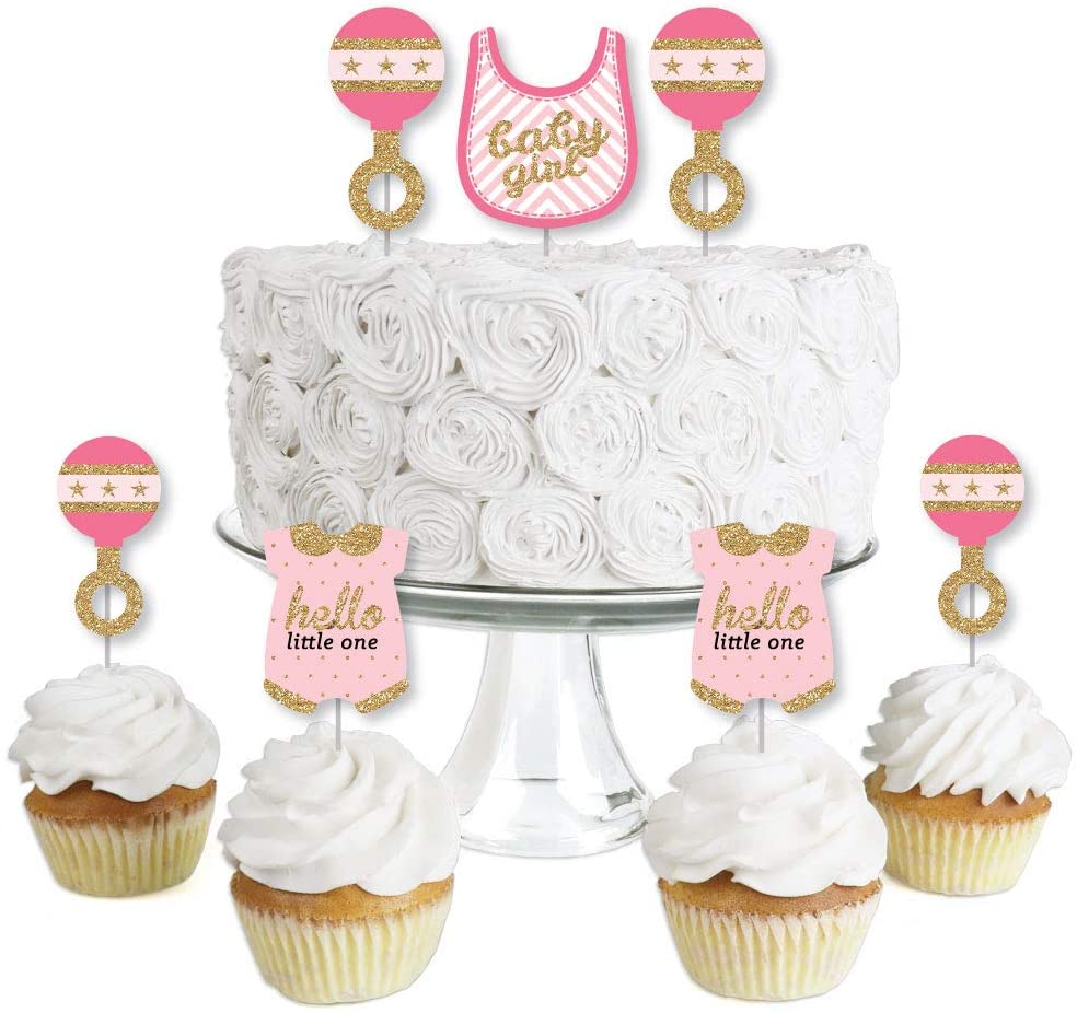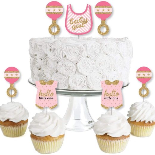 Hello Little One – Pink and Gold Dessert Cupcake Toppers INCLUDES 24 clear treat picks, 24 shaped paper cut outs and stickers for easy assembly. DI…