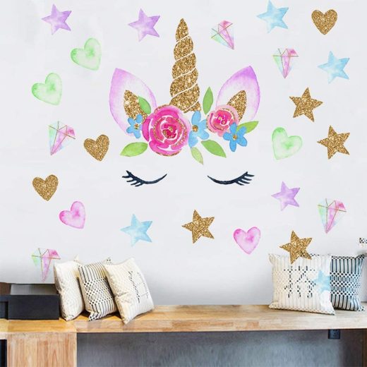 Be the first to review “heshengzaixian Unicorn Horn Wall Stickers, Unicorn Face Star Heart Wall Decals for Girls Bedroom, Baby Girl Nursery Kidu2019s Birthday Decoration,Girls Room Decor” Cancel reply