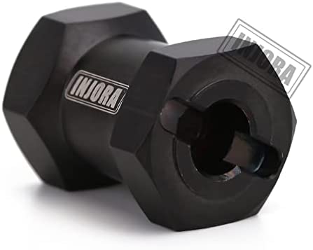 Features: Made of brass and etched with the INJORA logo, solid and abrasion proof The black hard coating with chamfered edges adds a bright touch to your car, to prevent corrosion also Heavier weight can lower the center of gravity and improve stability Extends the distance of the wheel and makes your car more stable and cool. The wheel spacer fit for 12mm hex rims and is compatible with 1/10 RC Crawler Car Axial SCX10 90046 D90 Specifications: Material: Brass Quantity: 4pcs/set Thickness: 15mm/0.59in Hex Width: 12mm (0.47in) Weight: 57g/2.01oz Package list: 1 * Set RC Car Brass Wheel Hex