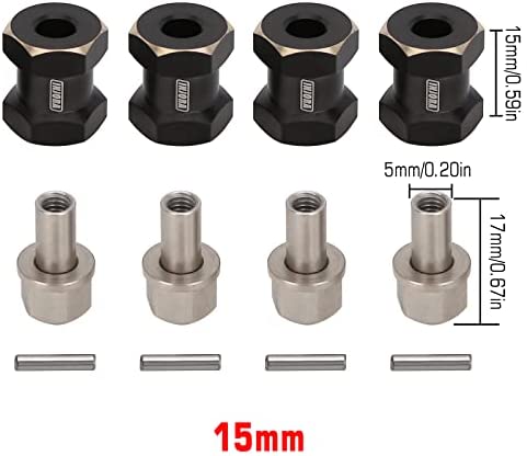 Hex Hub 12mm Brass Wheels Hex Hub Extension Black Hex Drive Adapter for 1/10 RC Crawler Axial SCX10 90046 D90 (15mm)