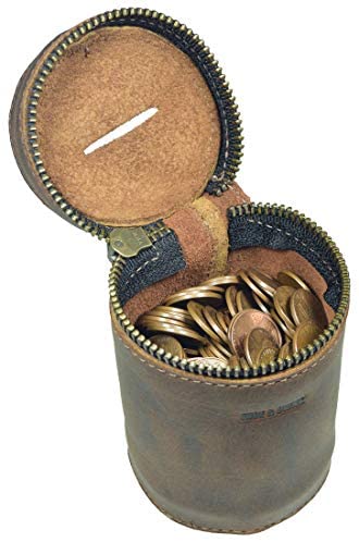 Hide & Drink, Leather Money Box, Piggy Bank Bucket, Zippered Pouch, Cash Organizer, Coin Case, Handmade Includes 101 Year Warranty :: Bourbon Brown