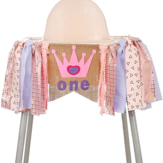High Chair Banner for 1st Birthday – Pink Crown Happy Birthday Banner Party Decorations for First Birthday , Princess Photo Props for Baby Girl