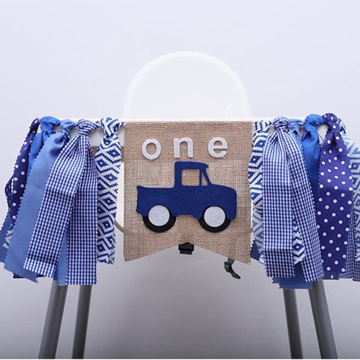 High Chair Pull Flag Blue Truck Logo 1 Year Old Birthday Banner Boy Baby Birthday Party Theme Decoration Props Background for Shooting Children Birthday Commemorative Gift