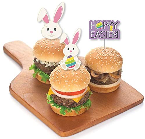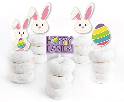 Hippity Hoppity Dessert Cupcake Toppers INCLUDES 24 clear treat picks, 24 shaped paper cut outs and stickers for easy assembly. DIY Hippity Hoppity cupcake supplies are perfect for an Easter Day party. Plastic clear treat pick SIZE 3.5 inches tall with the completed height of the Hippity Hoppity Dessert Cupcake Topper depending on where the plastic pick is attached to the shaped paper cut out. Cupcake toppers are perfect for standard cupcakes and can also be added to appetizers and individual servings of other sweet treats such as brownies or donuts, and even used to create small fruit kabobs. EASY PARTY DECORATIONS: Hippity Hoppity party picks make it easy to style a Easter bunny theme party. Create impressive cupcake towers with decorated treats placed on a tiered stand at the candy buffet table, style adorable tables with individual cupcakes at each place setting, or make creative centerpieces using decorated treats and a coordinating treat stand. PREMIUM PARTY SUPPLIES: Clear treat picks are made of food-grade plastic and packaged in a food-safe environment. The Hippity Hoppity paper cut out toppers are professionally printed on heavy-duty cardstock paper with themed art on one side and a coordinating pattern on the back. Cut outs will quickly attach to the clear dessert pick and then easily insert into your party appetizers or desserts. EASY ASSEMBLY INSTRUCTIONS INCLUDED: Clear treat picks and Hippity Hoppity shaped cutouts will ship with easy assembly instructions to create unique dessert cupcake toppers.