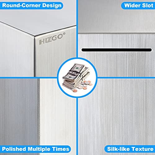 Hizgo Piggy Bank for Adults Stainless Steel Savings Bank to Help Budget and Save Must Break to Access Money(4.72 inch)