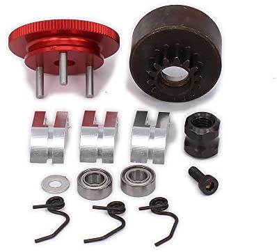 HobbyCrawler Clutch Bell Shoes Bearing 14T Gear Flywheel Assembly Kit Set Springs Cone Engine Nut for 1/8 RC Hobby Model Nitro Car HPI HSP Traxxas Axial Himoto (Red Color)