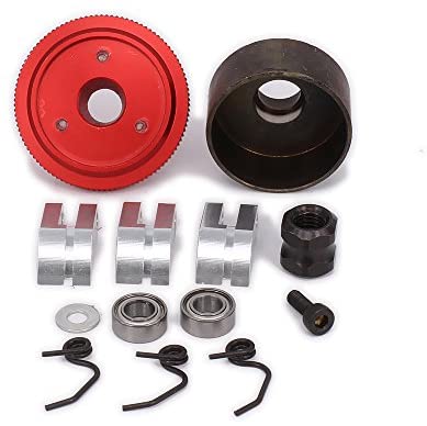 Specification:Bearing: 10 x 4 mm / 0.39 x 0.16 inch (Dia x Thickness)Flywheel: 34.4 x 17 mm/13.5 x 0.67 inch(Dia x H)Clutch gear:28 x 22 mm/ 1.1 x 0.87 inch (Dia x H)Clutch Shoes:20 x 10 x 7.5 mm/ 0.79 x 0.39 x 0.3 inch(L x W x H)Package include:1 x Flywheel1 x Clutch gear1 x Clutch Nut3 x Clutch Shoes & springs2 x Bearing1 x Screw1 x Round spacer