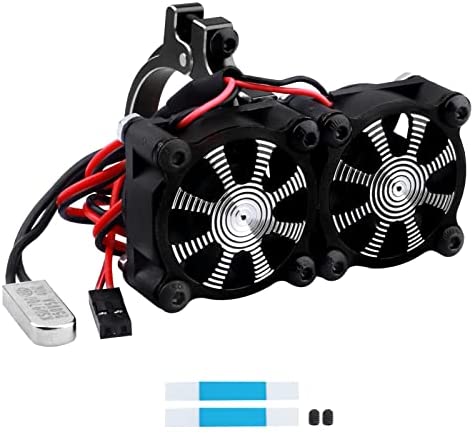 Hobbyfire RC Motor Cooling Fan Thermal Sensor Heatsink Brushless Dual Twin Cooling Fans for 36mm 540 Size Motors Compatible with TRX4 Axial SCX10 &…