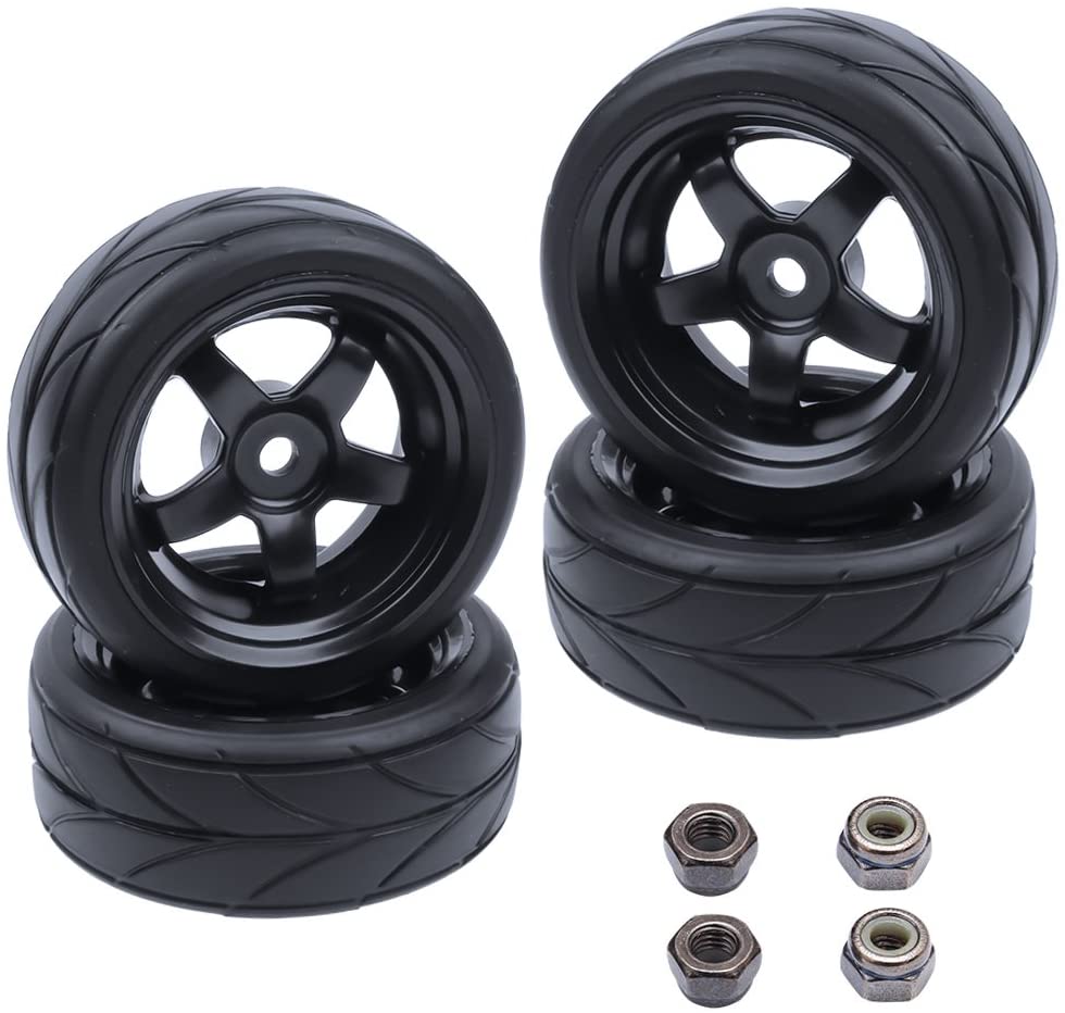 Note:Tires and Wheel Not Glued, mounted on rim only,can be split The color of the item may vary slightly due to photography & your own computer. Theres some little error from human measuring. Customer Satisfaction Guarantee If you are not 100% completely satisfied with our products, please do not hesitate to contact us to request a refund or exchange! Item: RC Tires & Wheel Rims Package Include: 4 Pieces (Not Glued,Include foam inserts) Note:Tires and Wheel Not Glued, mounted on rim only,can be split Features: Material: Tires->Rubber; Wheel Rim->Quality Plastic Diameter:2.56(65mm) Width: 1.02 (26mm) Hex Drive Hub: 12mm (Adapter Not Included) Compatible with: 1/10 Scale On Road Touring Car,such as Redcat, Hpi, Tamiya, Associated, HSP,ExceedRC,etc Also work on Traxxas 1/16 E-Revo If you have 12mm Adapter, it may work on your 1/18 scale models Note:Do not fit Rally / Off Road Truck / Truggy / Buggy Check your specific models manual for compatibility,or Contact us.