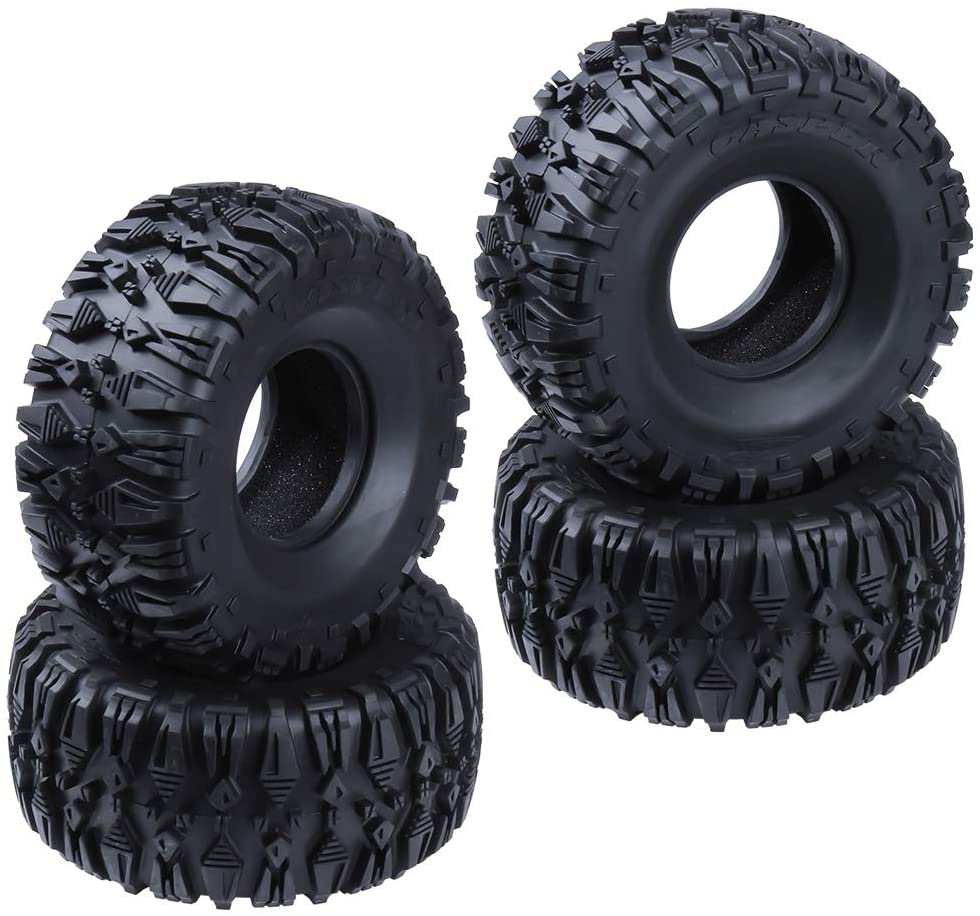 Note: The color of the item may vary slightly due to photography and your own computer Theres some little error from human measuring. Customer Satisfaction Guarantee If you are not 100% completely satisfied with our products, please do not hesitate to contact us to request a refund or exchange! Item: Rubber 2.2 Crawler Tires (With Foam Insert)Package Include:4 pieces (With Foam Insert) Features:Made Of Quality Rubber,High wear-resistant and excellent durabilityOuter Diameter: 135mm / 5.31 Inner Diameter: 58mm / 2.28 Width: 62mm / 2.44Compatible with:1/10 RC Rock Crawler Traxxas TRX4 Axial SCX10 Tamiya CC01 RC4WD D90 Note:Check your specific models manual for compatibility,or Contact us.