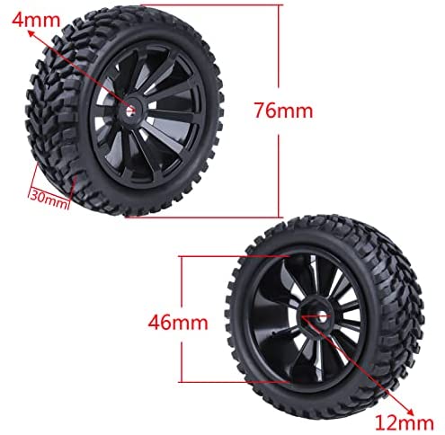 HobbyPark Outer Diameter 2.99 inch / 76mm Rubber RC Car Tires & Wheel Rims Foam Inserts 12mm Hex Hub (4-Pack)
