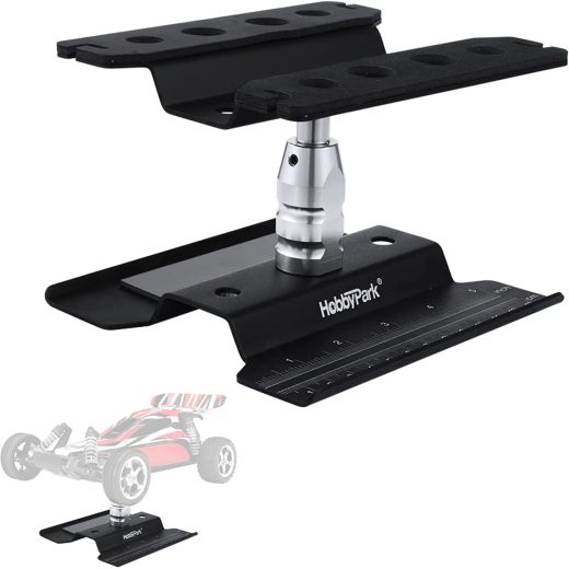 360-degree rotation;Adjustable Height;Built-in holes for rebuilding shocks;Chassis with scale, you can measure the length of the parts