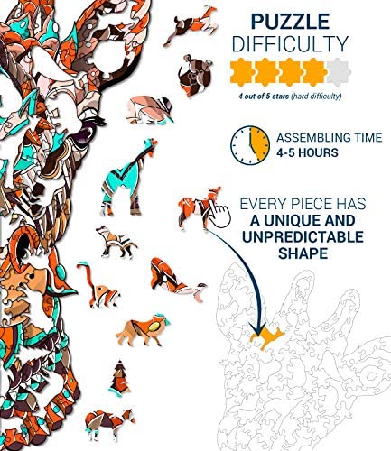 Wooden Animal Shaped Jigsaw Puzzles – Expert Level Assembling, Hard Assembly Level (4 stars with 5), 4-5 hours of Assembling, 12+ years, Natural Wo…