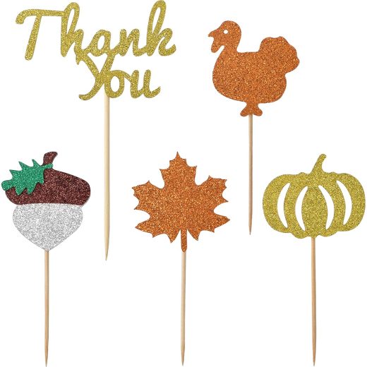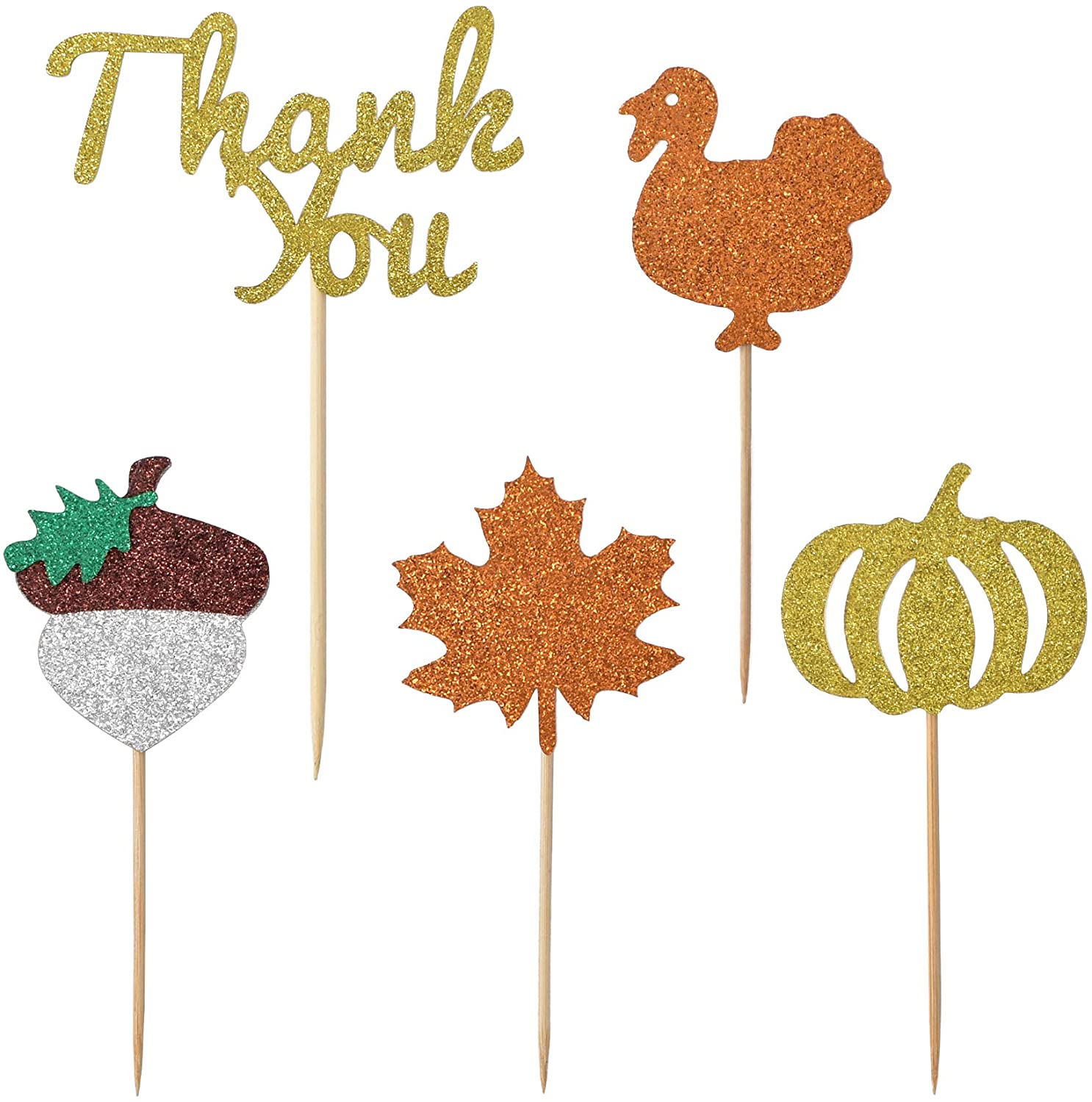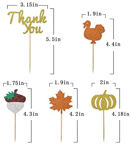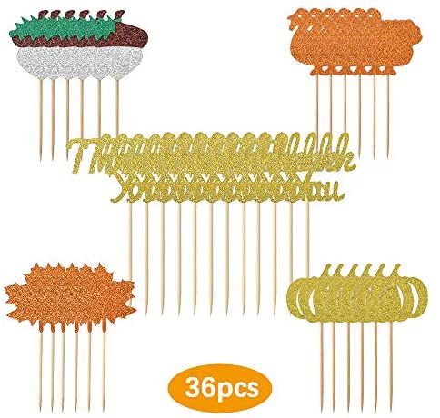 THANKSGIVING PARTY DECOR: Thanksgiving cupcake toppers are perfect decoration for cupcakes and food on Thanksgiving theme party decor WIDE USAGE: Thanksgiving cupcake picks with bamboo toothpick, very safe for put them on cakes, cupcakes, ice cream, fruits, cheese and any dish you want to decorate. Just plug on cake directly to make your decoration more pretty and warm HIGH QUALITY MATERIAL: Paper+Bamboo. Thanksgiving cupcake toppers are made of paper, designed with good cutting process PACKAGE INCLUDE/SIZE: Pack of 36 Thanksgiving Cupcake Toppers (5 Styles). SIZE: Length Approx 4.1-5.2inch ATTENTION: Designed for single-sided. Thanksgiving cupcake toppers are only for decoration purposes, Not edible and please do NOT place in oven. Any question will be solved within 24 hours
