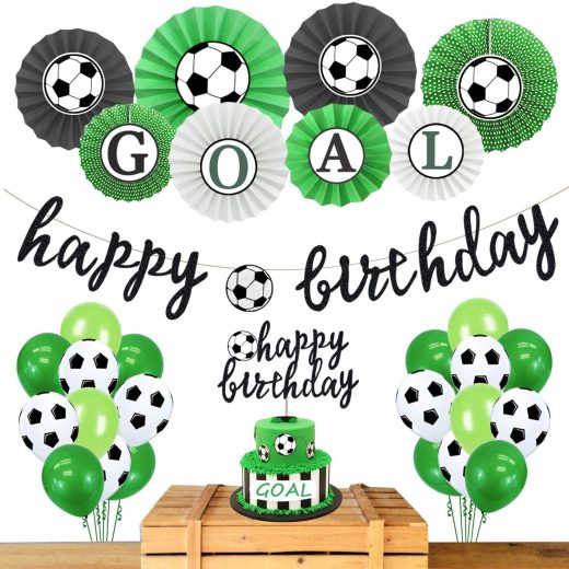 Material Paper Included Components Soccer party decorations, soccer balloons, soccer cake , soccer balloon garland arch Hombae Theme Soccer party decorations