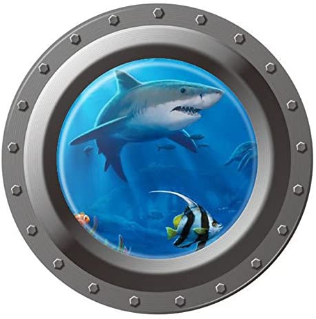Home Find 3D False Porthole Decals View of Ocean Undersea World Shark Tropical Fish Turtle Wall Stickers Peel and Stick Removable Vinyl Arts for Kids Room Nursery Home Decor 17.7 inches x 17.7 inches
