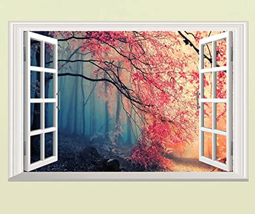 Home Find Removable Fake Window Scene 3D Faux Windows View Walls Decals View Peaceful Woods Trees Stickers Self Adhesive Vinyl Decor for Living Room Bedroom Nursery 23 inches x 15 inches