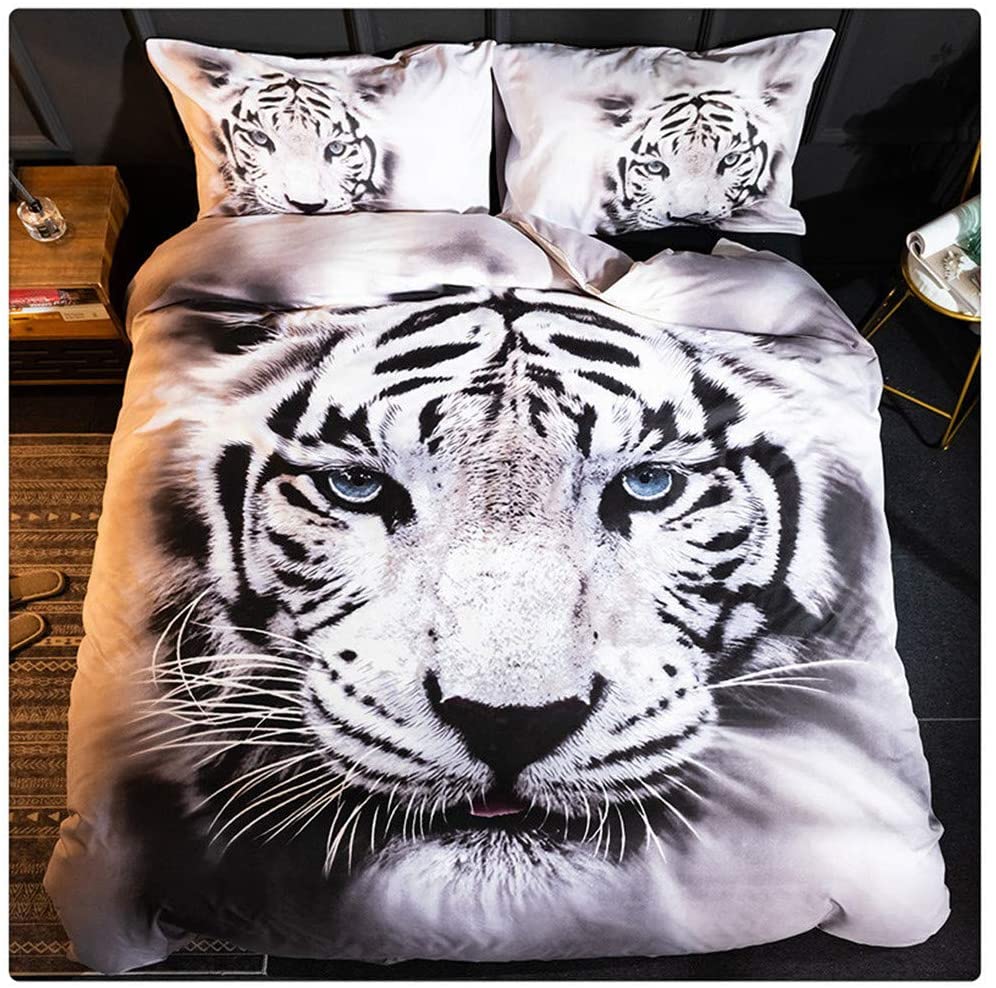 Homebed White Tiger Bedding Set Queen Size 3D Animal Print for Kids Boys Teens Duvet Cover Set 3 Pieces