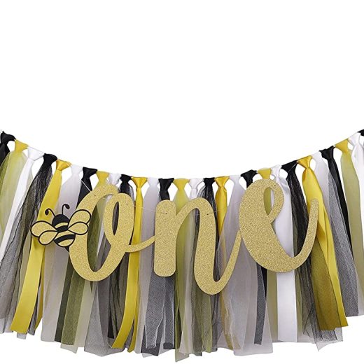 Honeybee Highchair Banner Decoration for Baby – First 1st Birthday Banner Photo Props, Yellow White Black, High Chair garland Handmade Party Supplies