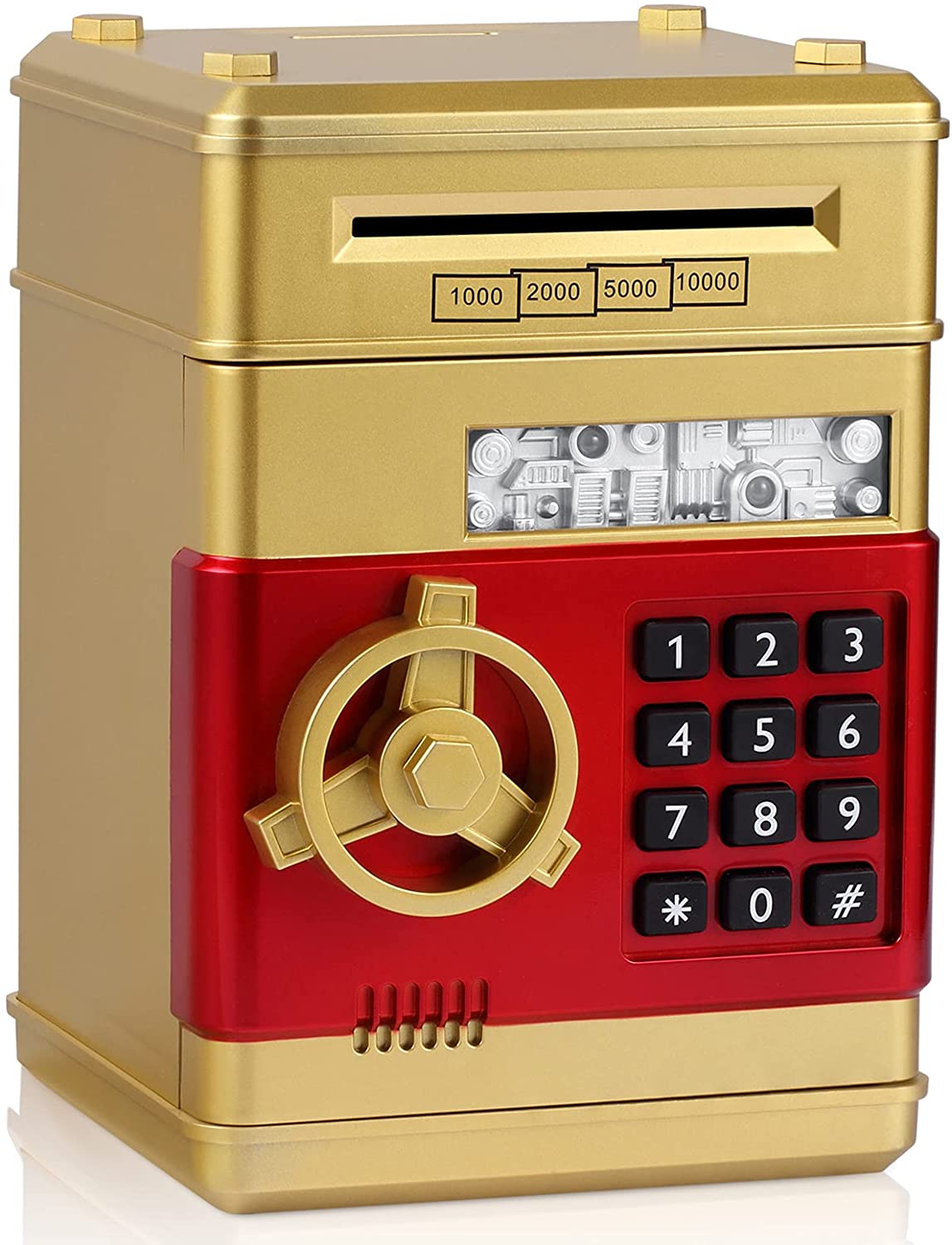 Honeystar Piggy Bank for Boys Girls, Large Electronic Real Money Coin Bank with Safe Password Lock, Auto Scroll Paper Money Plastic Saving Box Toy, Gift for Kids(Gold)