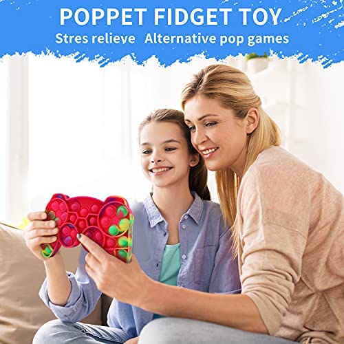 HooYiiok Gamepad Tie Dye Push Pop Pop Fidget Toy, Stress Relief Pop Game for Autism ADD and ADHD Special Needs Anxiety, Popper Fidgets Toys for Girls and Kids (Blue Camouflage)