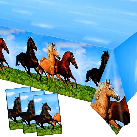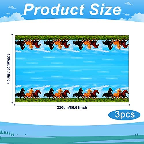 Horse Party Decorations Supplies Horse Tablecloths 51 x 87 Inch Horse Party Table Cloth Horse Theme Table Covers for Horse and Birthday Party Supplies Decorations Cowboy Cowgirl (3 Pieces)