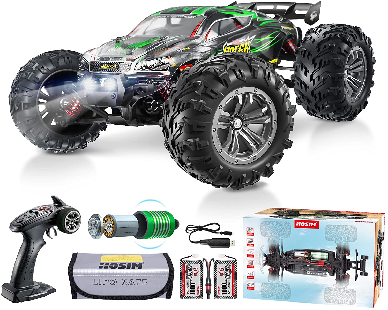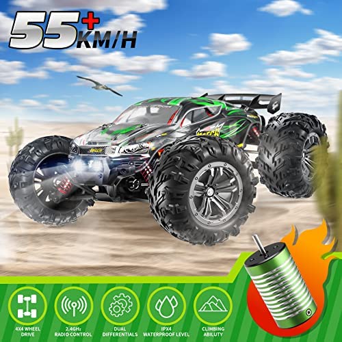 55+ KMH Amazingly Fast with 4 Wheels Drive 2845 brushless motor,you can break the speed limit up to about 33MPH+,youll be impressed by this little monster truck.Four wheels are installed independent suspension spring let cross-country car body more flexible.